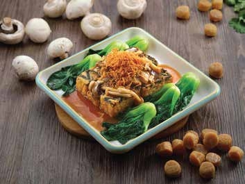 Braised Handmade Seaweed Beancurd with Dried Scallop with Mixed Mushroom